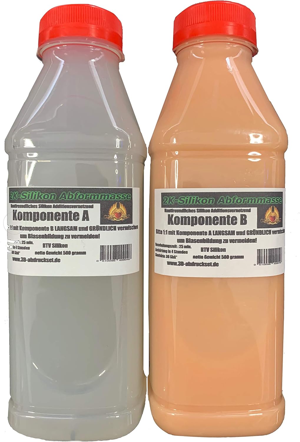 Total 1.0 kg. The silicone comes in 2 components, A and B each 500 g