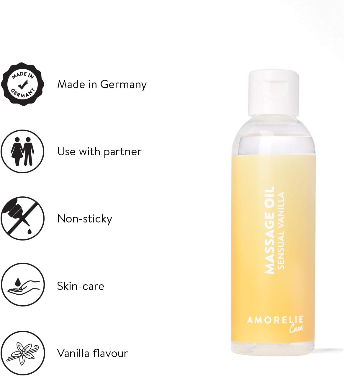 Amorelie Basics Sensual Vanilla Massage Oil (100ml) – Moisturising, Non-Stick Body Oil for Massage – Subtle Fragrance Oil for Real Spa Feeling