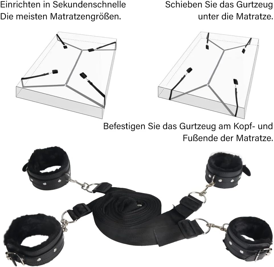 Werkstoff: NylonFarbe: schwarzHandschellen*2Fußfesseln*2Riemen*1