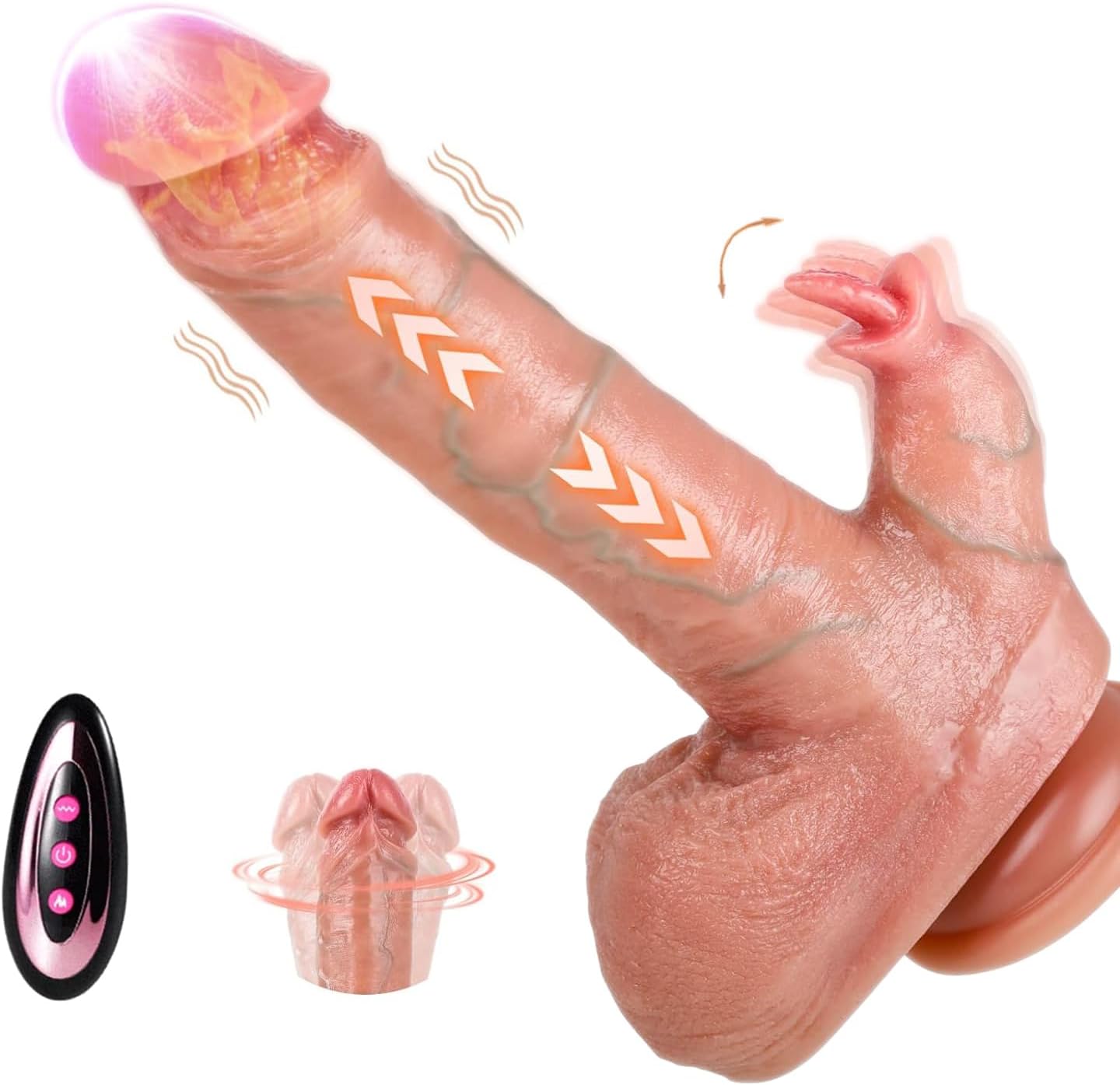 4-in-1 dildo vibrator with remote control: realistic dildo combines the features of the dildo and the G-spot vibrator to make this inserted dildo vibrator perfectly with a remote control that allows you to control either the vibration or retraction alone or both functions together. It can be either a G-spot vibrator or an inserted dildo, stimulating the clitoris, chest or use as a massage stick.