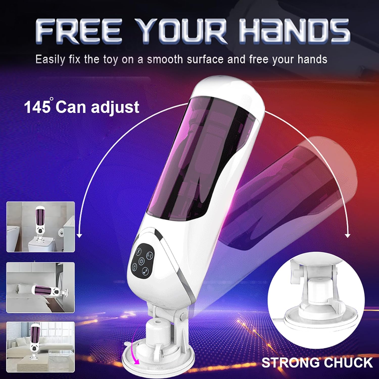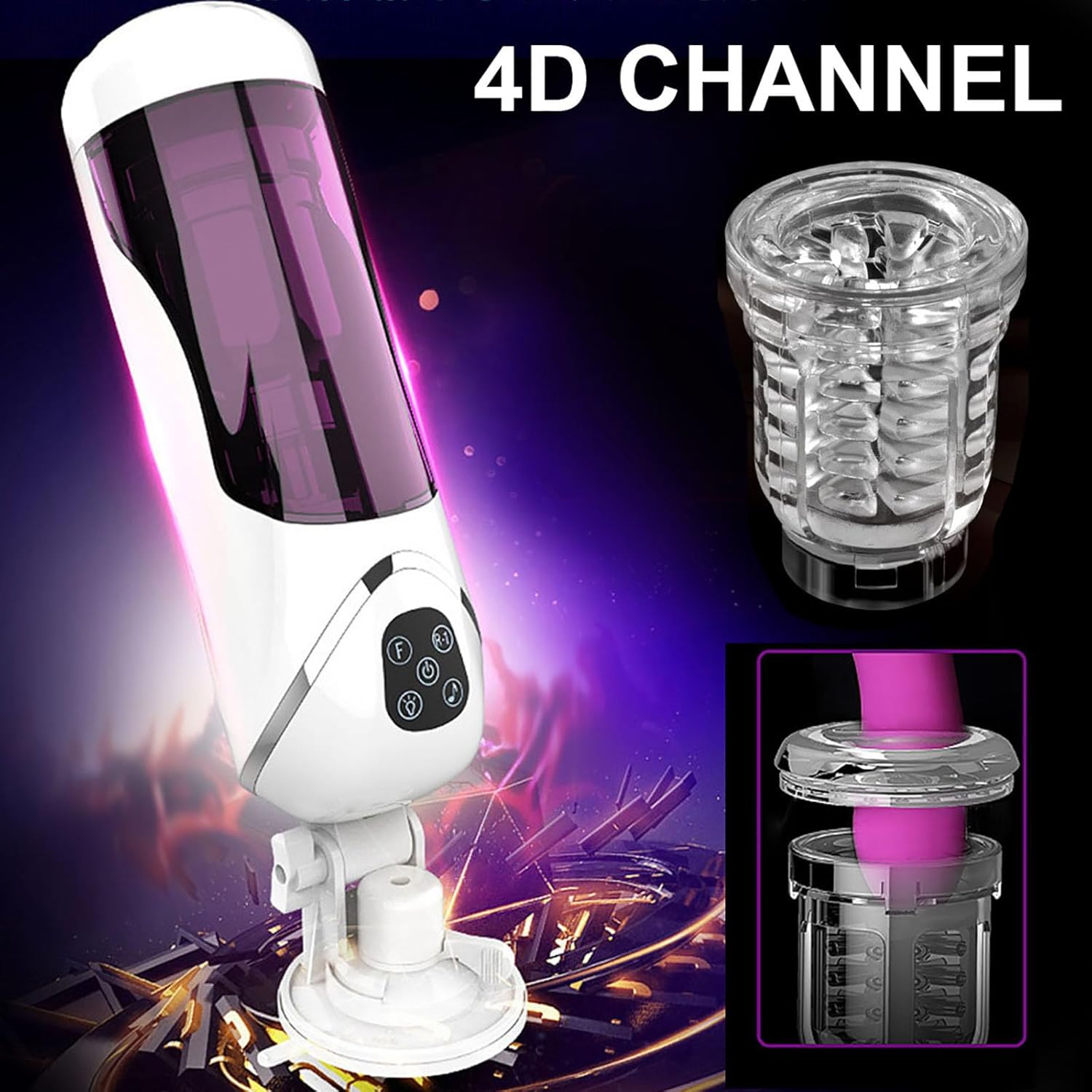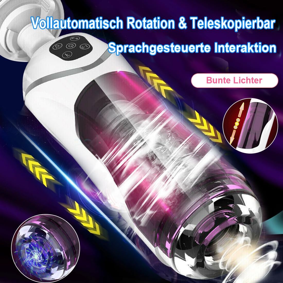 Masturbating for men electric: this masturbation cup sex toy for men, with fully automatic rotation, telescopic and colourful lights and voice-controlled interaction.