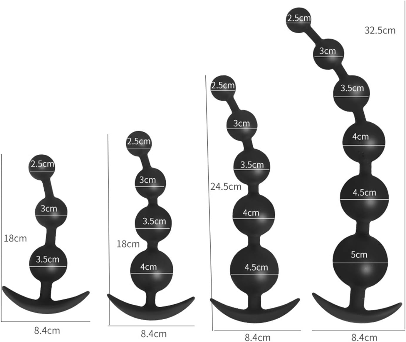 2024 Silicone Chain Balls 33.5/40/50 cm Extra Long Plug Chain with 4 Balls Durchmesser 3/4/5 cm Beads Sex Toy: 3 Sizes – Silicone Godemiché.