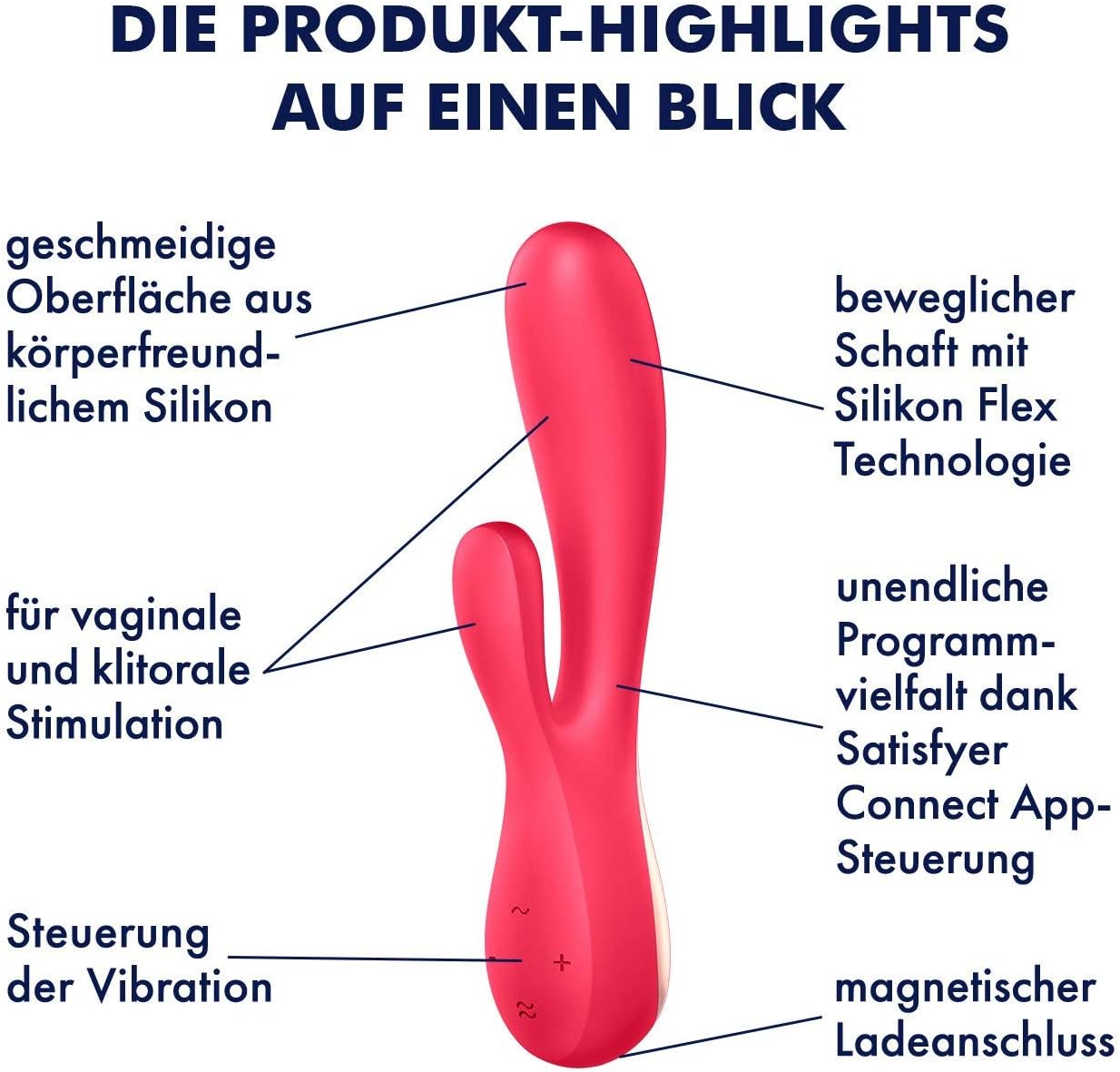 G-Spot Vibrator Satisfyer Mono Flex Connect App, Clitoris Vibrator for Her, Pressure Wave Vibrator with App, Clitoral Stimulator, Sex Toy for Women and Couples, Rechargeable 20.5 cm