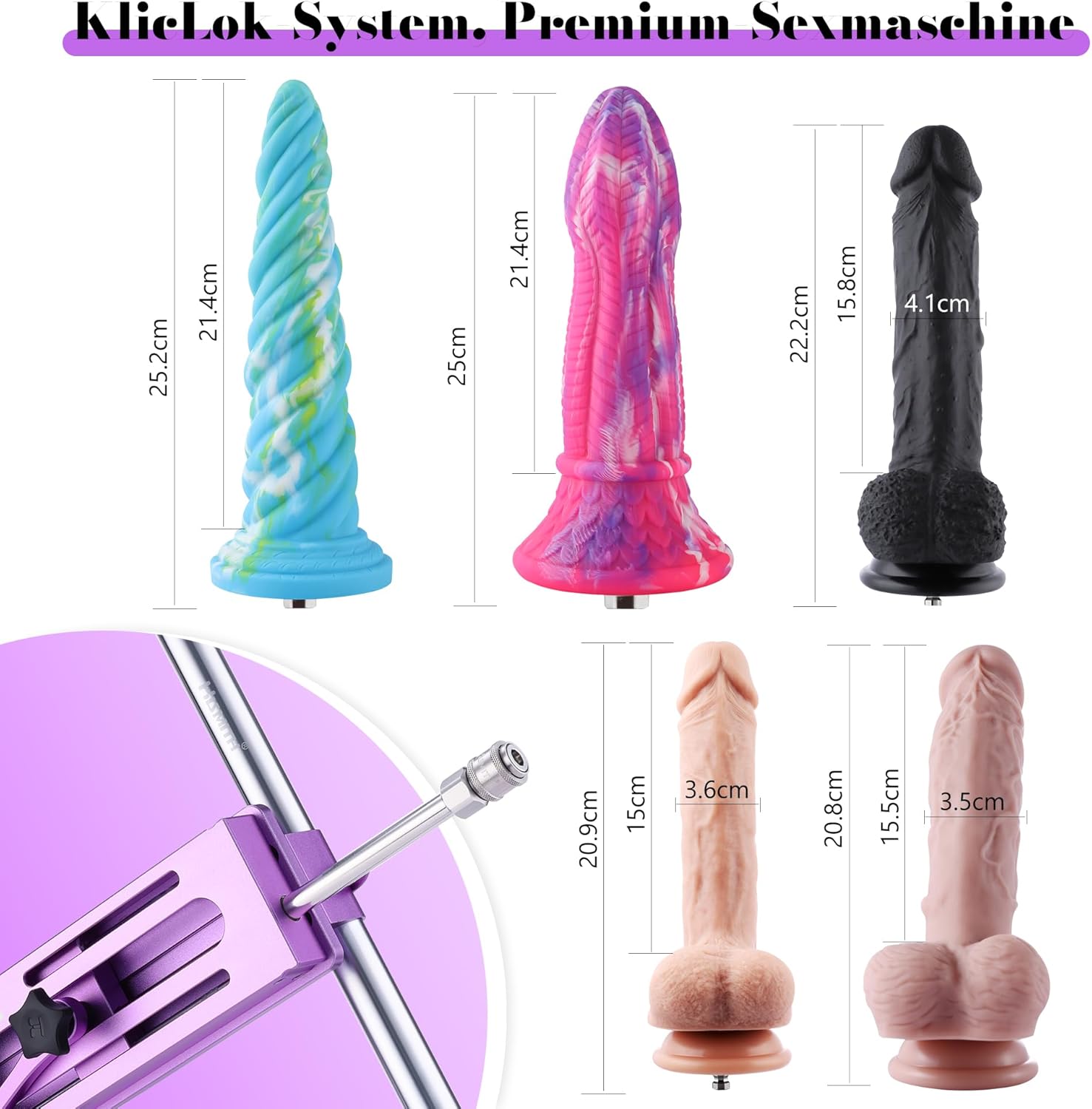 100-Wolfram-Sexmaschine von Hismith mit verschiedenen Aufsätzen zur Erfüllung unterschiedlicher Wünsche.