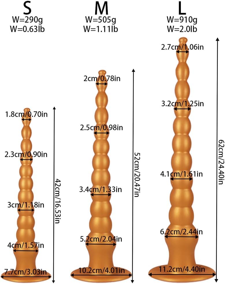 Extra long plug: an extra long plug made of multiple balls, whose diameter gradually increases from small to large for gradual sexual stimulation. The smooth surface makes it easy to insert