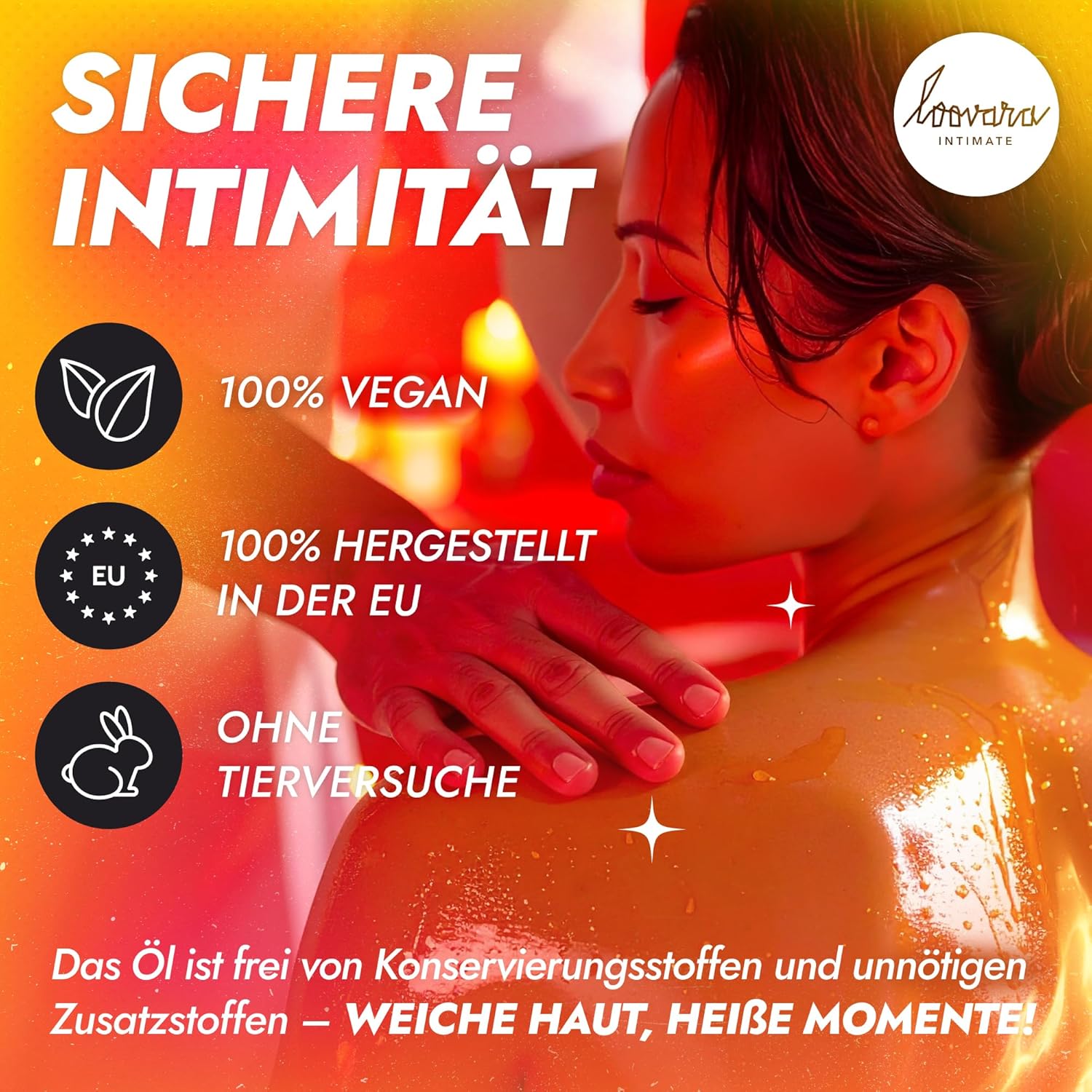 Dermatologically tested: Loovara massage oil is well-tolerated, nourishes the skin and makes it soft and supple. It can deswegen be used to massage sensitive and intimate areas of the body.