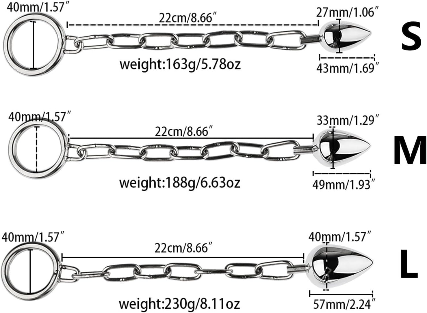 Perfect size: the stainless steel plug ball chain with cock ring. Ring inner ring diameter: 40 mm. Tanzfest diameter: 27 mm/33 mm/40 mm