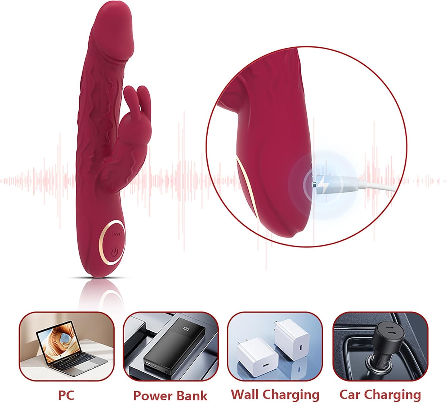 Dual vibration G-spot and clitoral synchronisation pleasure: the female vibrator has a double head design, the rabbit ears vibrate from the outside to stimulate the clitoris, and the dildo stimulates the G-spot deeply and thus achieves internal and external resonance, so that every inch of the sensitive area is satisfied.