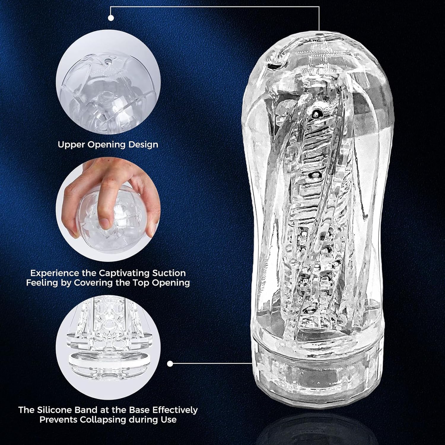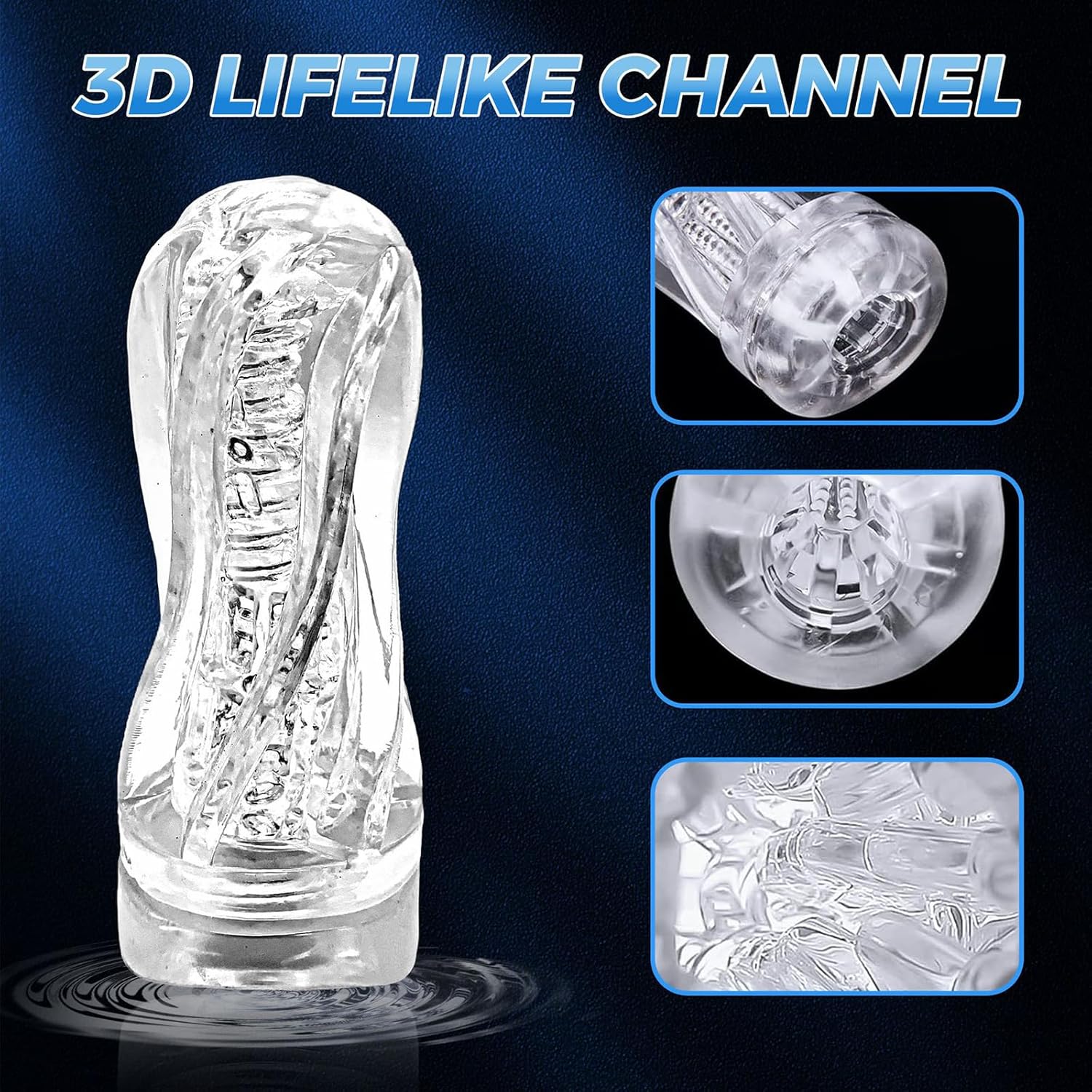 Realistic 3D texture channel: the unique concave and convex particles and the spiral design of the male masturbation device accurately stimulate every nerve, provide realistic and glans pleasure and increase self-pleasure.