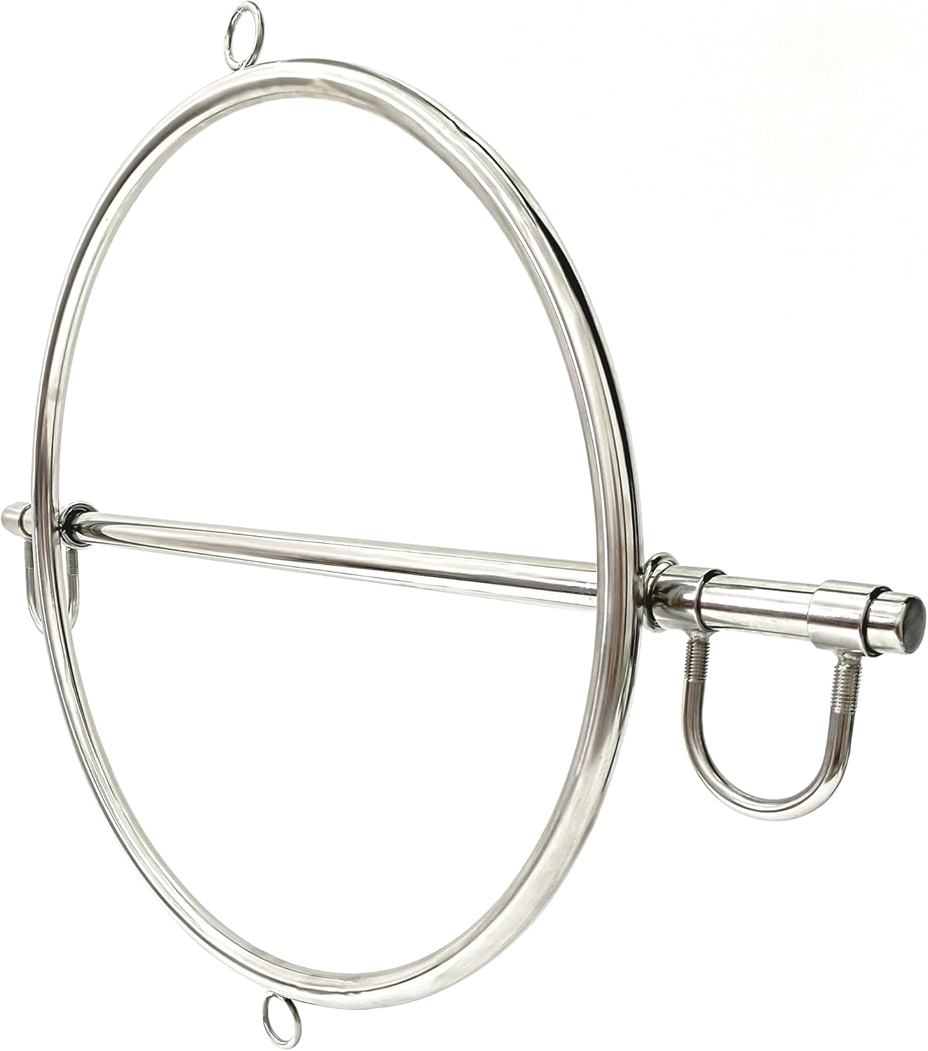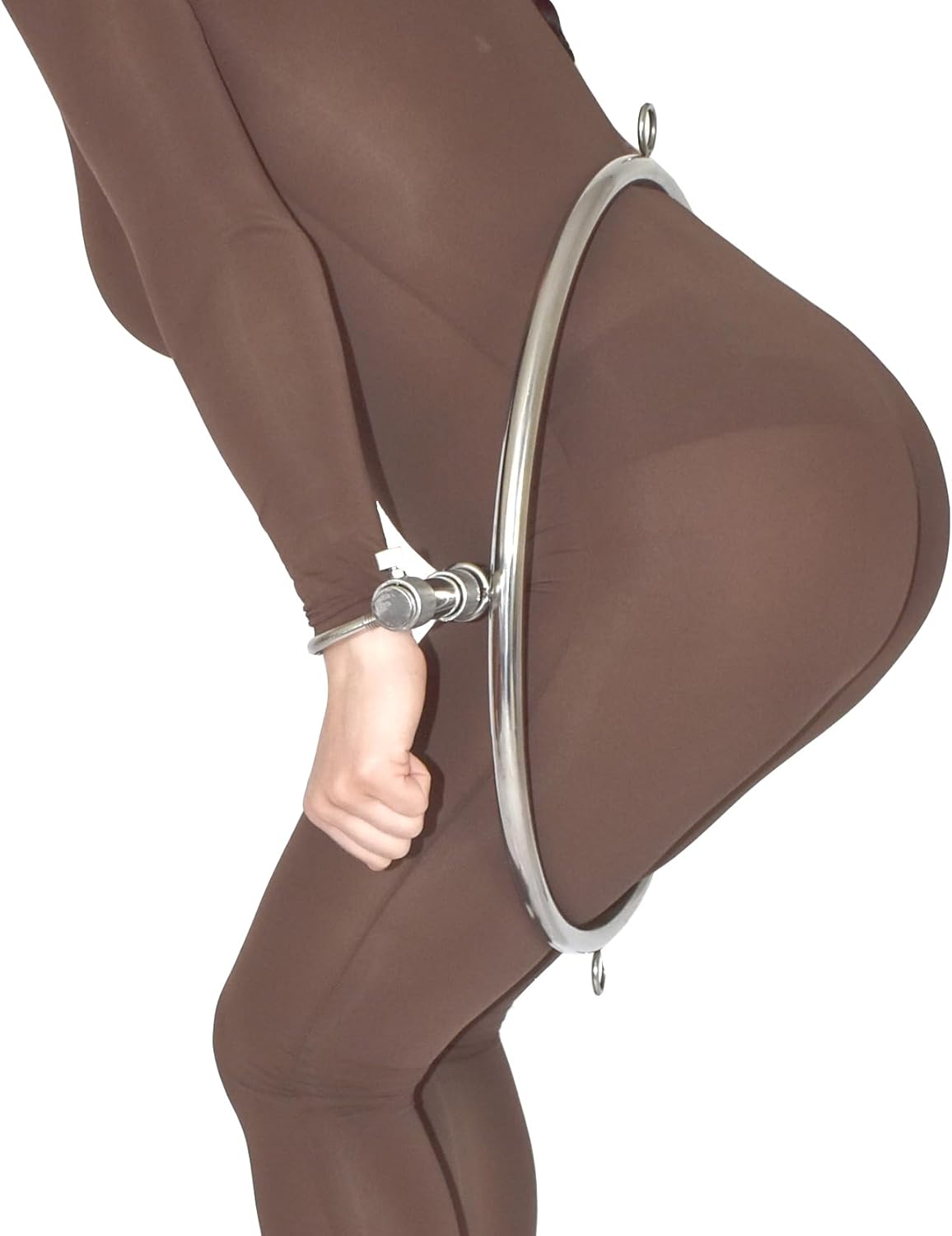 The bondage restraint ring is made of heavy metal and can be wonderfully placed around the already bent buttocks.
