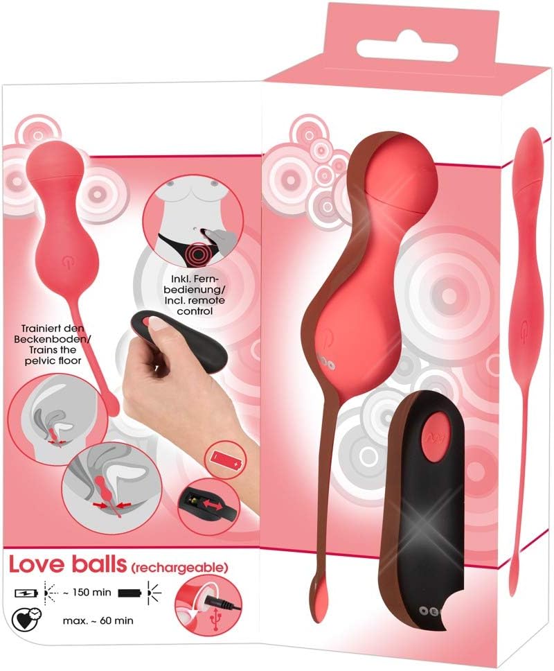 Kasten contents: 1x Orion love balls in red from the label „Go Soft“, weight: 79 g, insertion length: 9 cm, diameter: 1.7 – 3.4 cm, incl. remote control, 1x battery 23A, USB plug