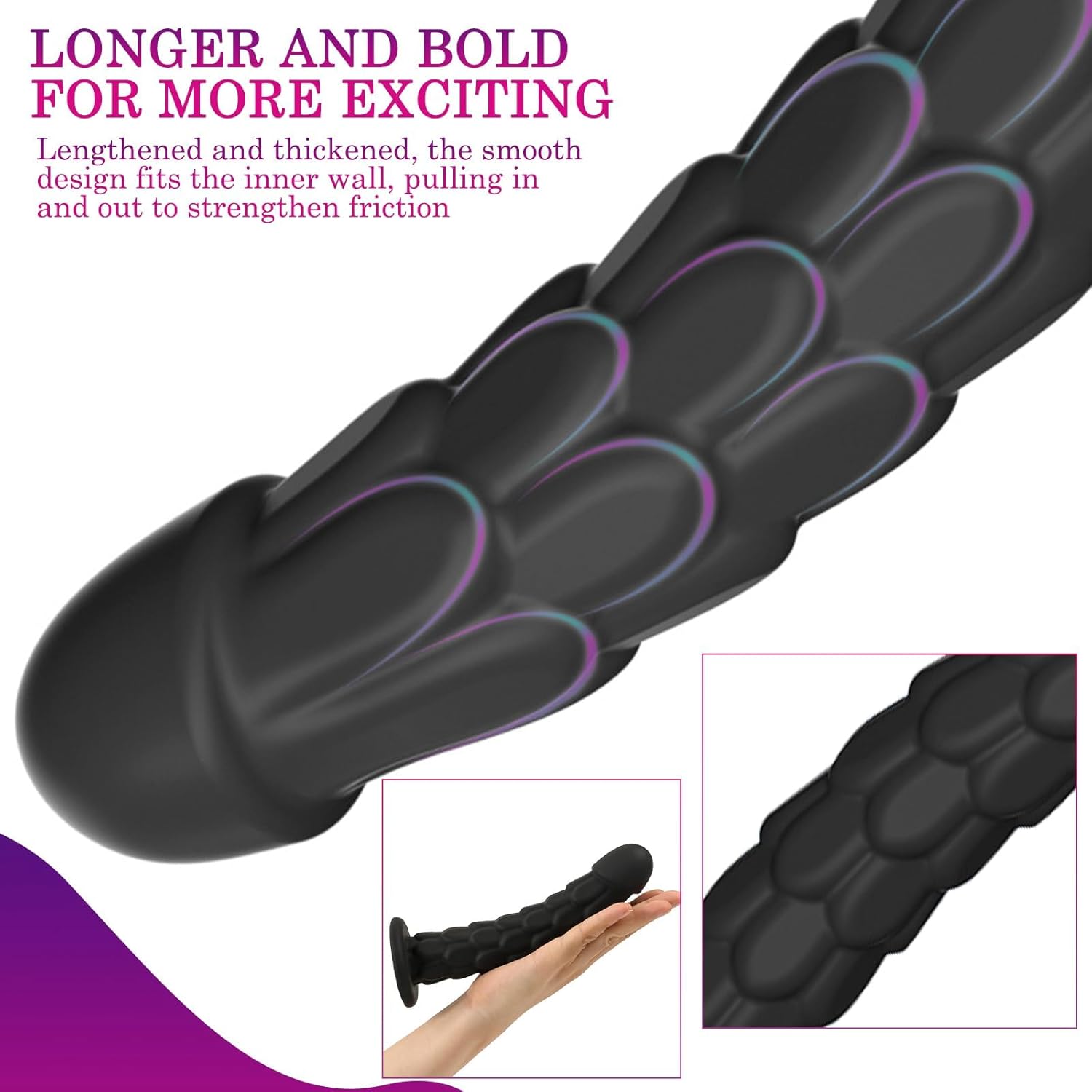 Curved + fish scale design: plugs dildo has a unique, curved design that allows easy insertion and adapts perfectly to the inner curves of the anus or vagina. The rich and realistic scales on the surface of the realistic dildo rub stronger on the inner walls of the anus and vagina and stimulate exactly the female G/P point and prostate for intense stimulation and multi-layered pleasure.