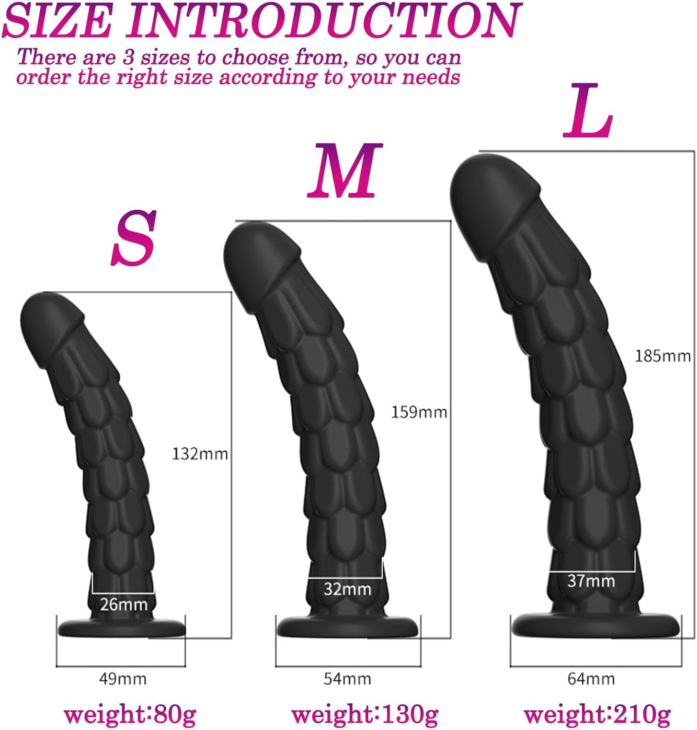 3 different sizes: from sizes Sulfur to L, dildos are available in 3 sizes for you to choose from, perfect for a new player the progression experience, start with the smaller sizes and you will experience an escalating feeling of excitement and performance. Choose the toy that best fits your size and start your journey of discovery fun.