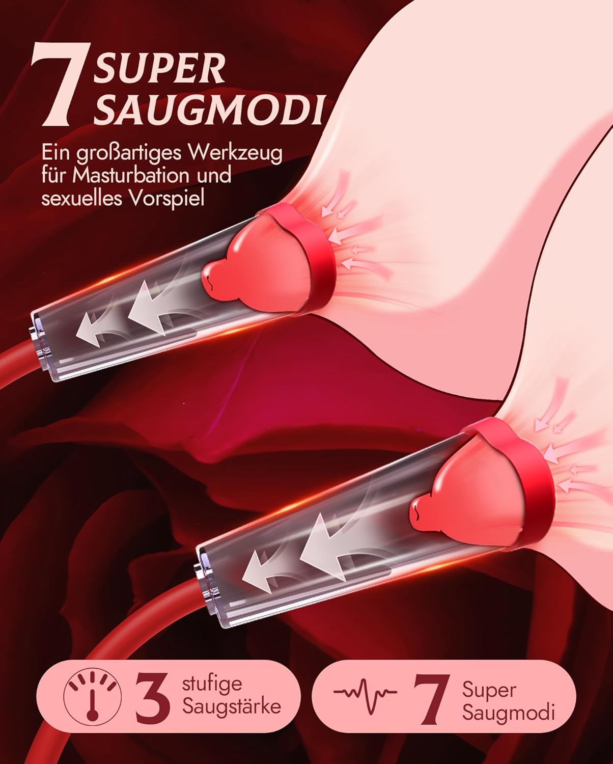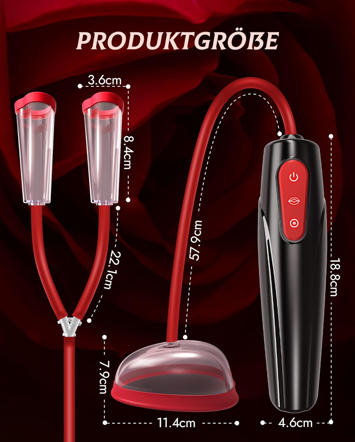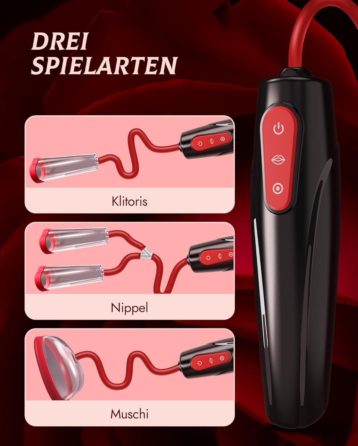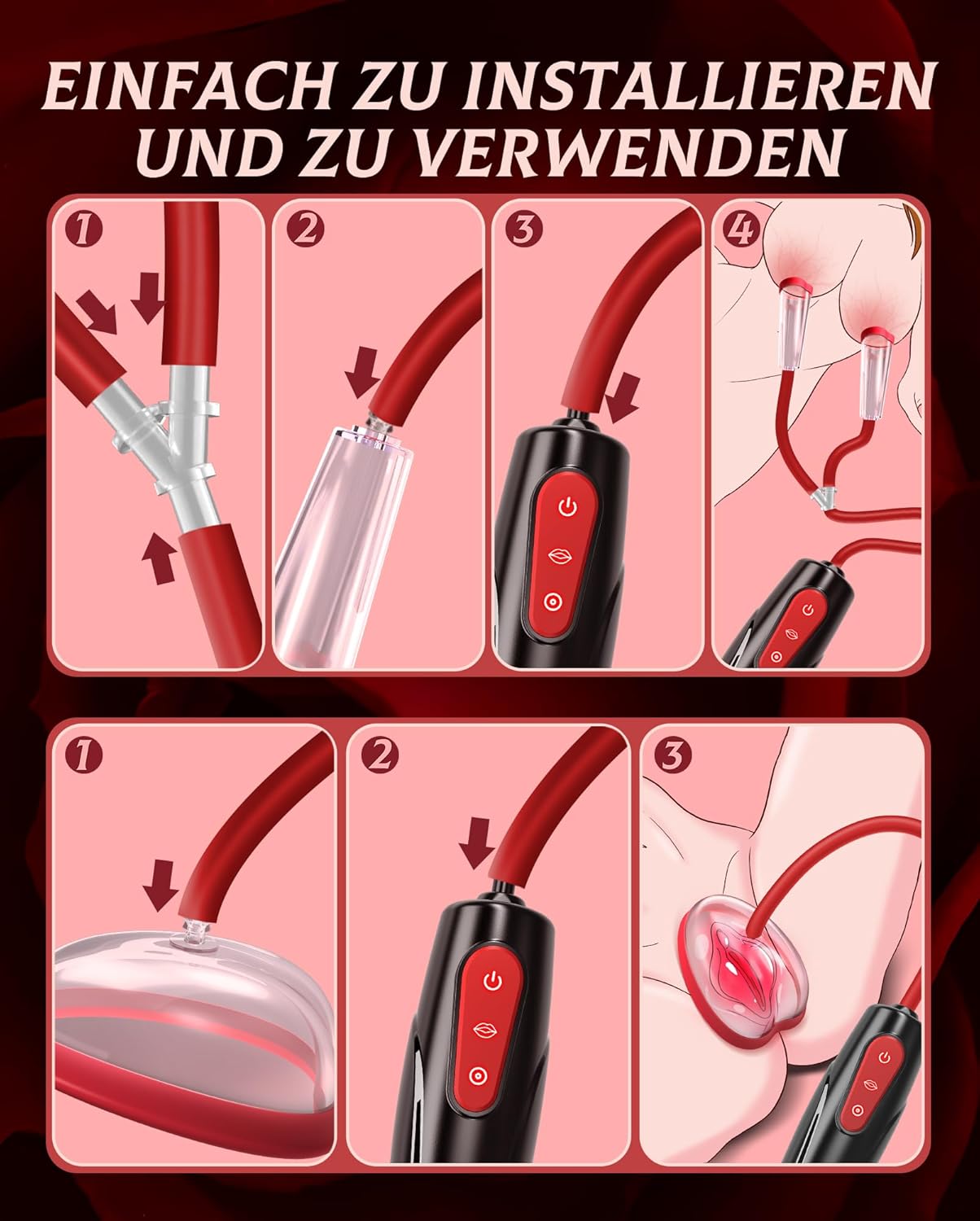 Hands-free comfort for maximum enjoyment: Experience intimate moments with the automatic 3-in-1 pussy pump. This sex toy for women increases sensitivity by promoting blood circulation to the clitoris, vagina and nipples. This ensures more intense stimulation and fuller orgasms. The BDSM toys are perfect for solo experiences or as an exciting addition to foreplay for two