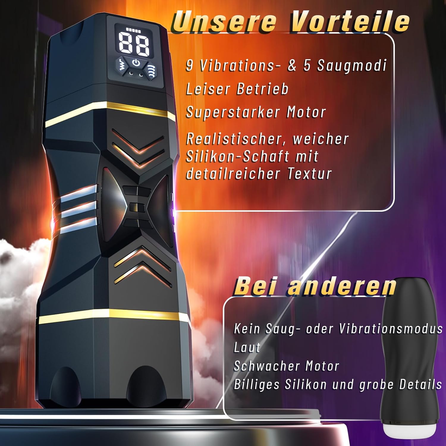 Vibrating masturbators for men with cock rings: This sex toy for men has 10 vibration modes and 6 cock rings. 10 vibration modes with different frequencies provide more stimulation and fun. In addition, we have included 6 different sizes of cock rings so you can find more ways to play and extend your sex time.