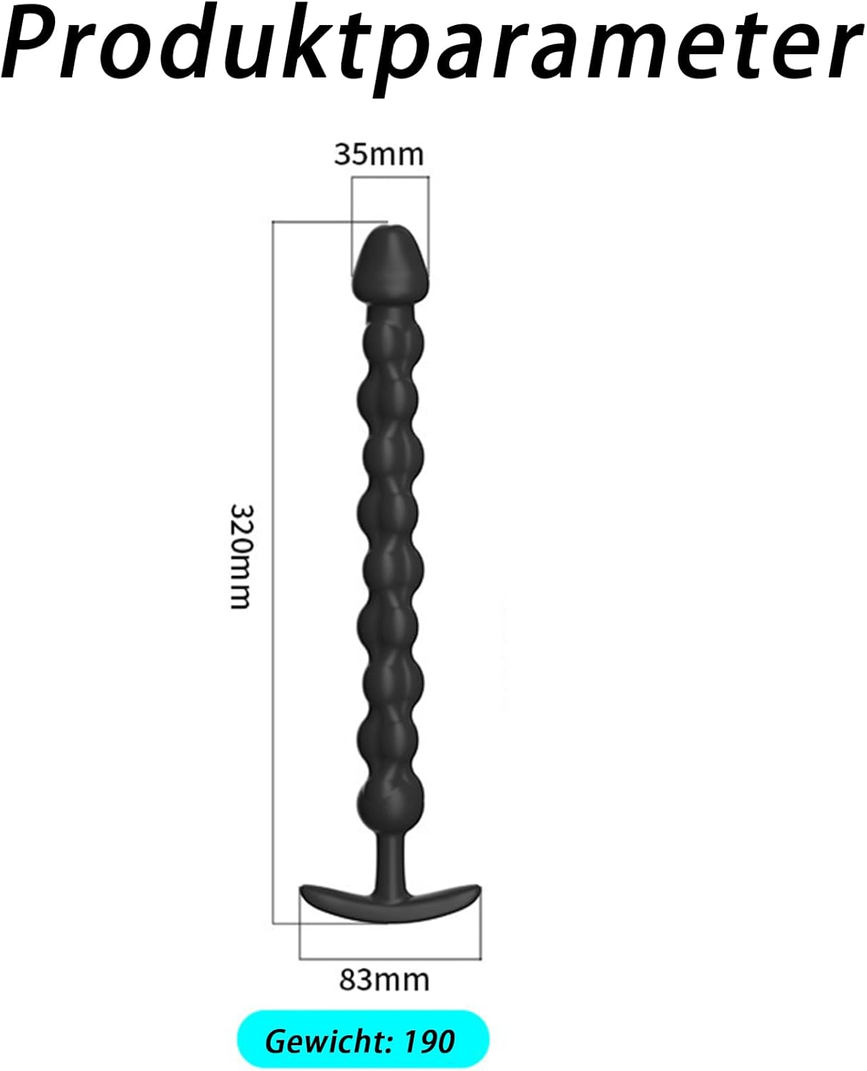 Experience intense pleasure moments with this high-quality necklace made of medical silicone. With 10 evenly arranged balls, it provides progressive stimulation that is suitable for both beginners and experienced users. The impressive length of 32 cm allows for deep penetration and intense sensations. The flexible structure adapts to your body and ensures maximum comfort during use. The ergonomic design with a secure boot-shaped base handle prevents complete penetration and ensures easy handling. Whether alone or with a partner, this toy is versatile and enriches any intimate encounter. It is ideal for training stretching and preparing for more intense experiences. Product highlights: 10 balls for continuous stimulation: ideal for progressive stretching and lasting pleasure. Extra long length (32 cm): allows deep penetration and intense sensations. Secure base handle: prevents complete penetration and makes it easier to use. FLEXIBLE MEDICAL GRADE SILICONE – Conforms to the body for maximum comfort. MULTI-PURPOSE Suitable for both men and women, beginners and advanced users. Instructions for use: For the best experience, we recommend using a water-based lubricant. Clean the toy thoroughly with warm water and mild soap or a suitable toy cleaner before and after use. Discreet packaging: your privacy is important to us. The product is delivered in parteilos packaging, with no indication of the contents.
