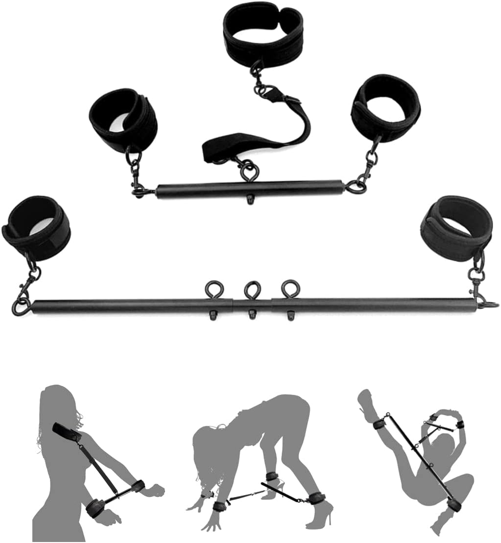 Spreader Bar Bondage Handcuffs Ankle Restraints Sex Toy with BDSM Sex Suit Adjustable Metal Spreader Bar Slaves for Couples (Black)
