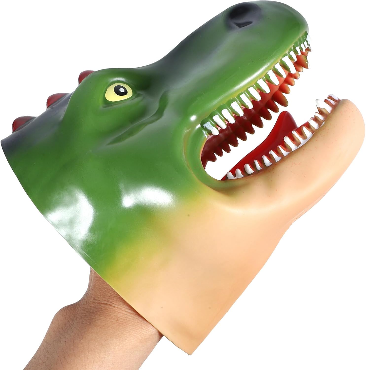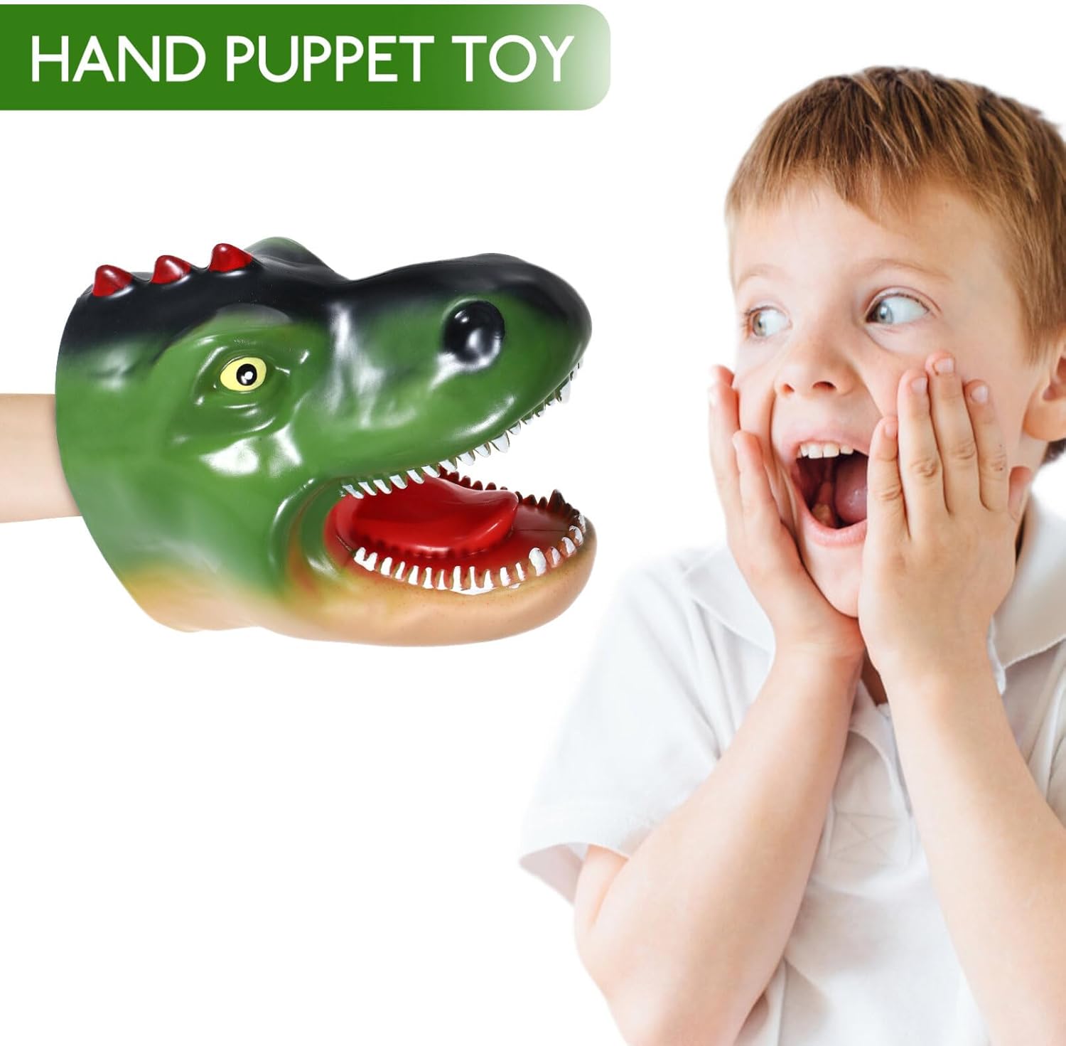 Toyvian Dinosaur Hand Puppets: Realistic Dino Head Puppet Soft Animal Hand Puppet Rubber Doll For Kids Party Show Imaginative Play Storytelling