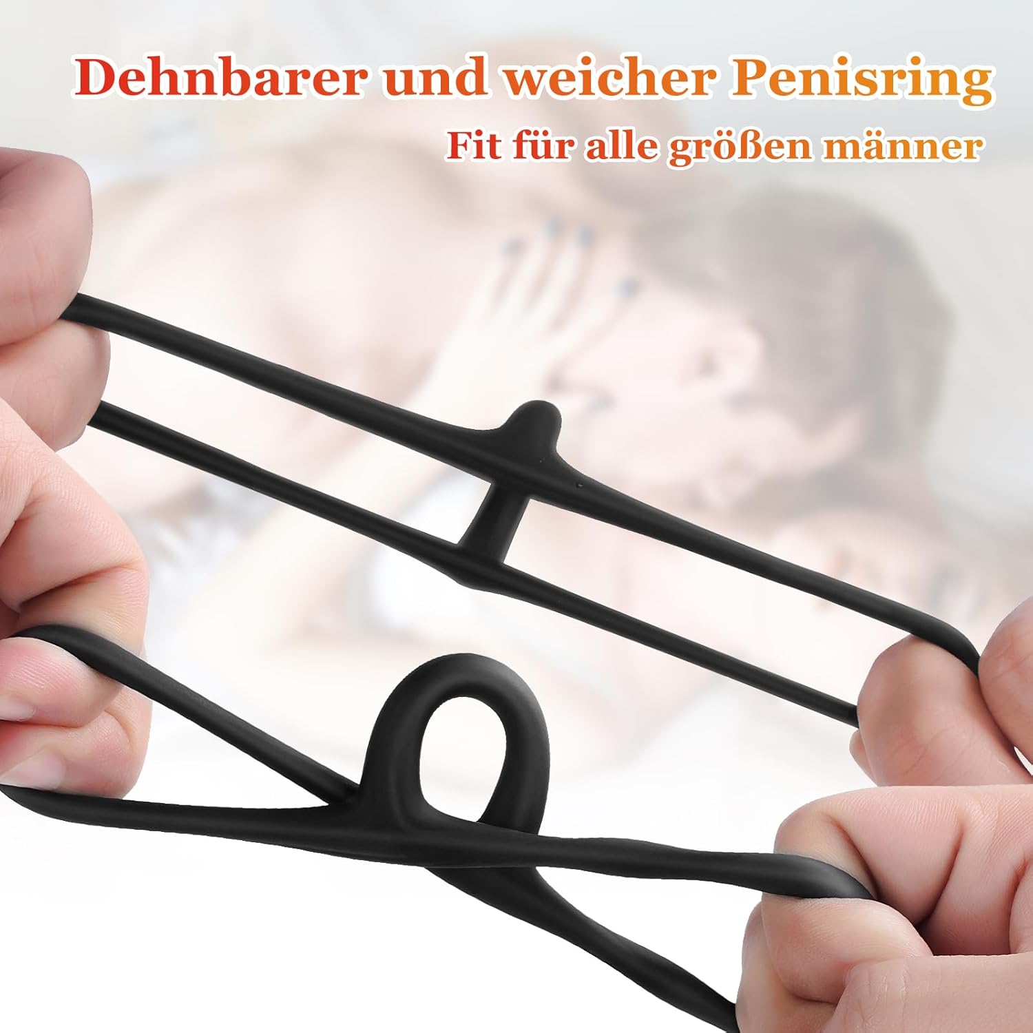 Comfortable to wear – The size of the large ring is 47 mm, the middle ring 39 mm and the small ring 35 mm. The three elastic sex rings in different combinations can give the a comprehensive feeling of firmness. You can demnach share the ultimate pleasure with your partner, enrich your sexual taste and ensure longer lasting sexual intercourse.