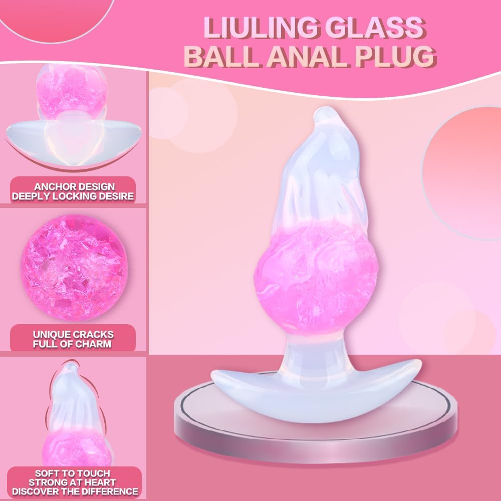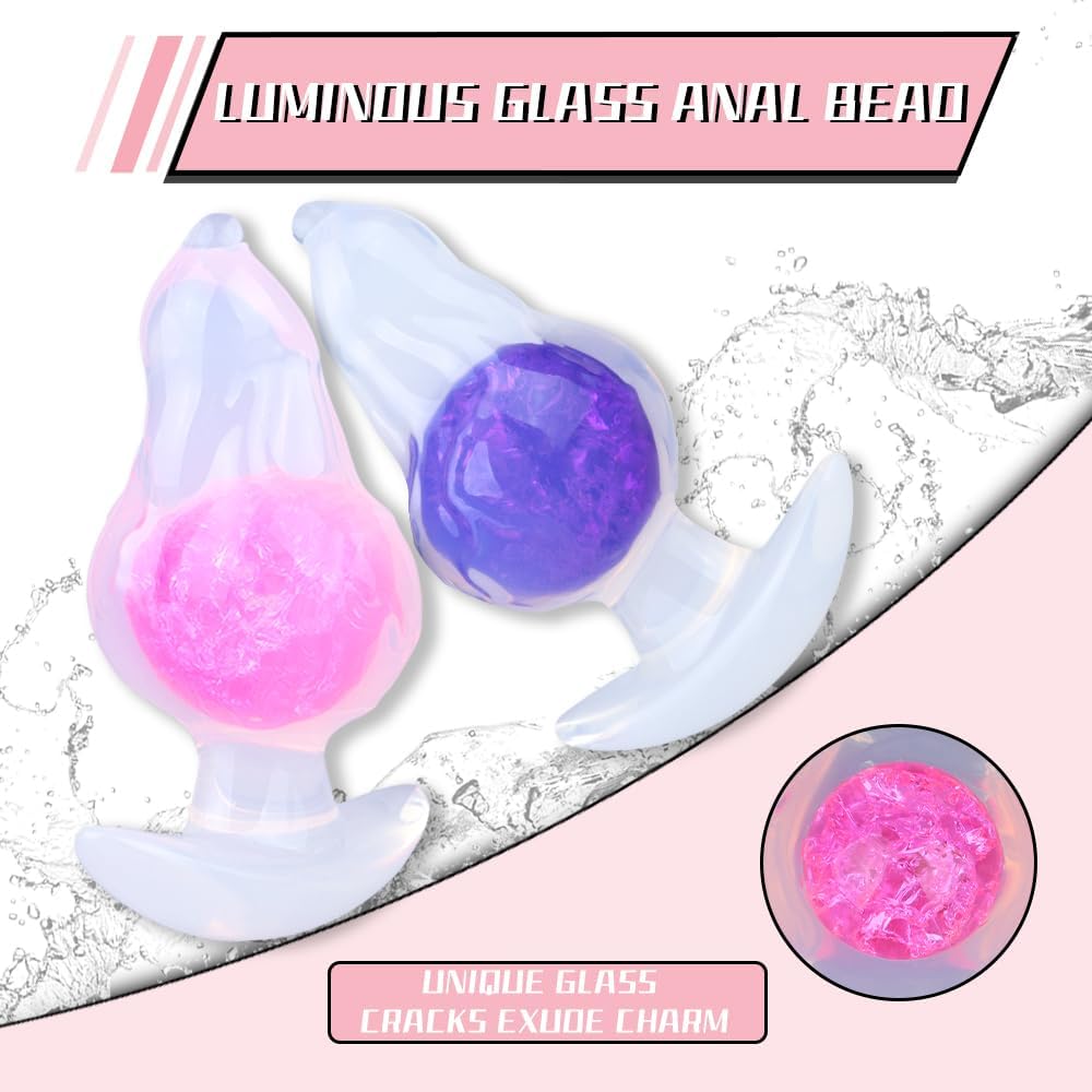 Veyjuns Silicone Plug with T-Base and Glass Ball Effect – Soft Butt Plug for Men & Women, G-Spot & Prostate Massage, Dilator for Beginners & Advanced Users (CF-P9141, Pink)